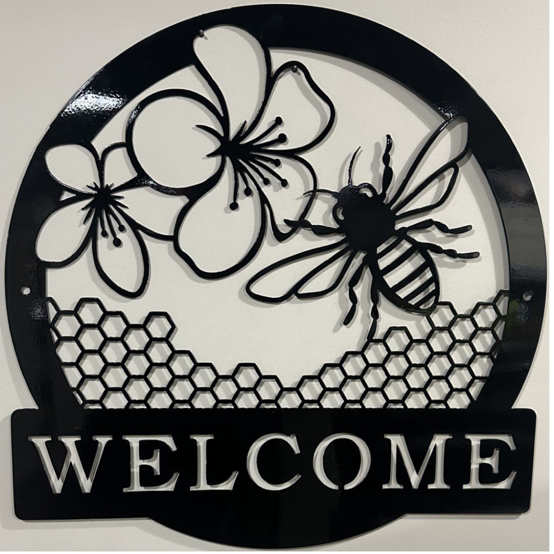 Welcome Garden Bee Metal Art